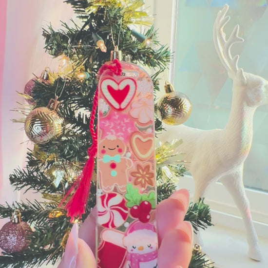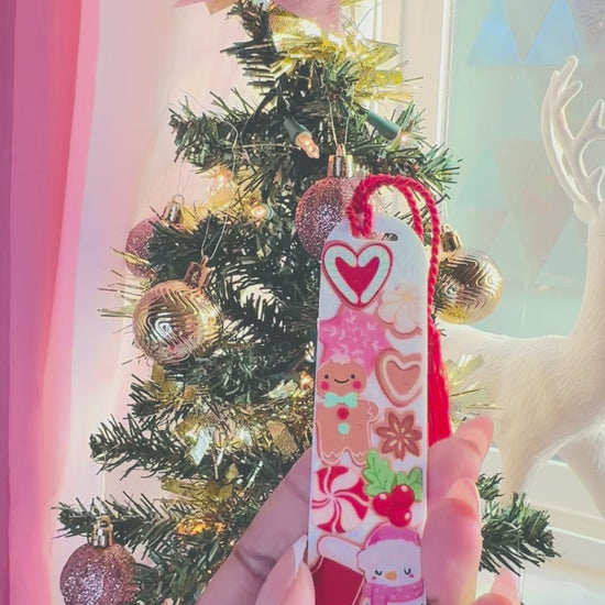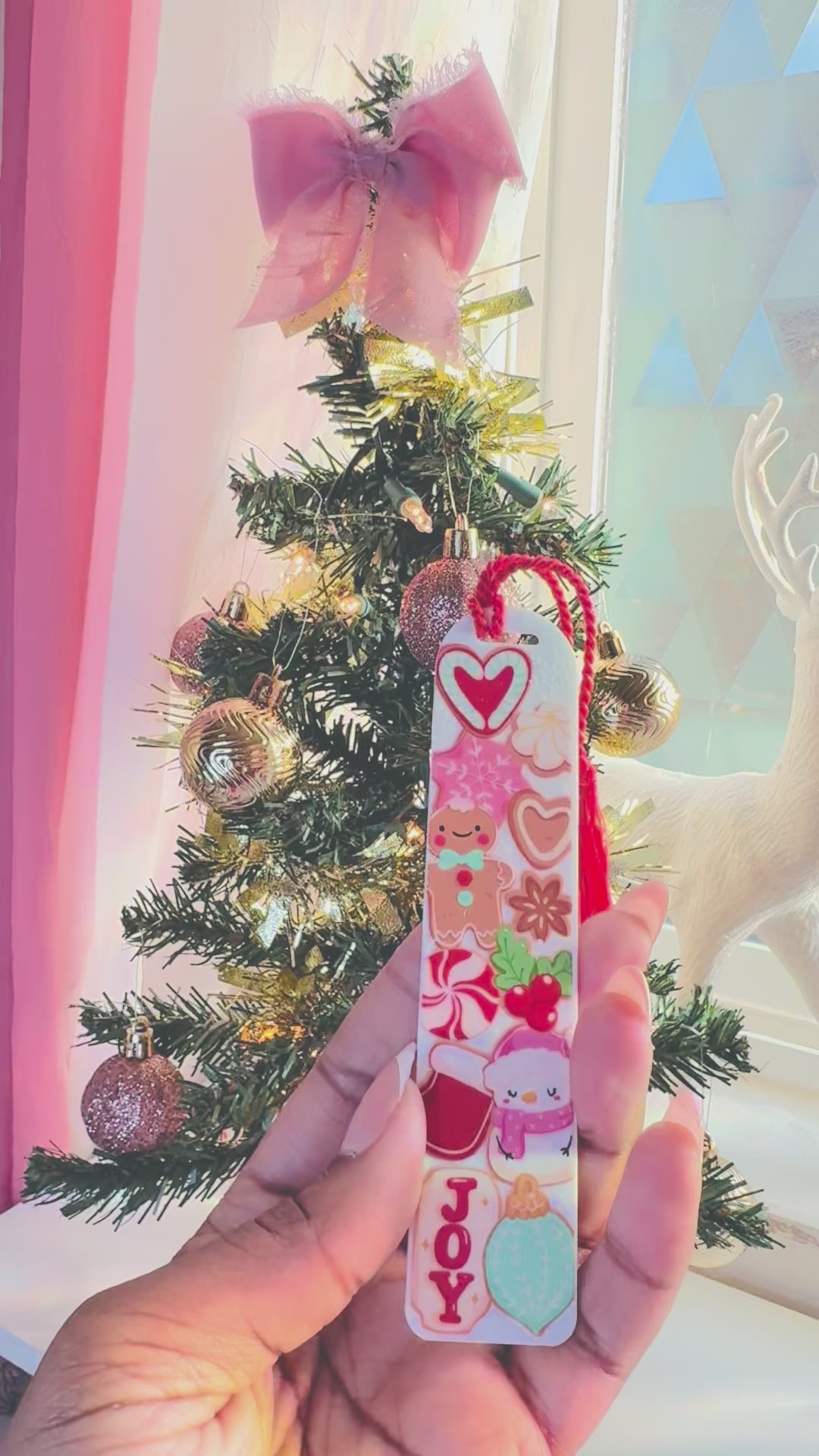 The Christmas Joy Collection includes a 16oz Libby glass, matching acrylic bookmark, and a coordinating keychain, all decorated with bright, crisp UVDTF decals. The decal on the cup doesn’t fully wrap, so a name can be added (free!) to fill in the open space, making your cup feel complete and personalized just for you.