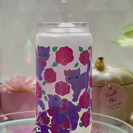 - 🍹 1 Frosted or Clear 16oz Glass Cup with Lid + Straw